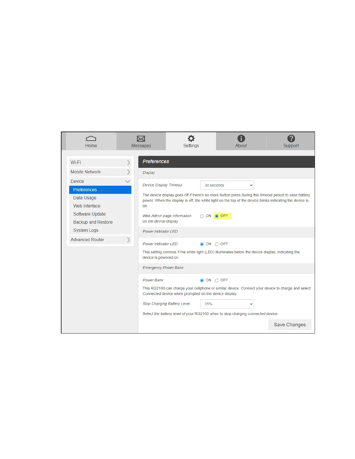 2. Turn OFF the option for “Web Admin page information on the device display”.