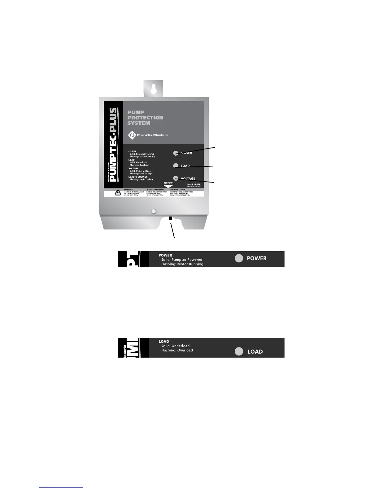 Una LUZ VERDE SÓLIDA indica que Pumptec-Plus tiene alimentación y que el contactor al motor