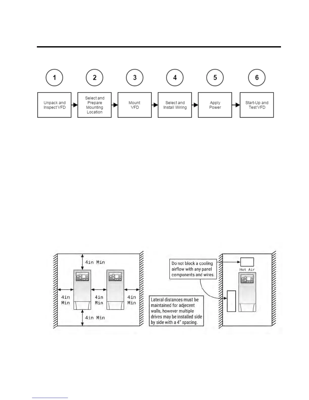 Mount VFD vertically (top up) for proper heat dissipation. Provide sufficient clearance