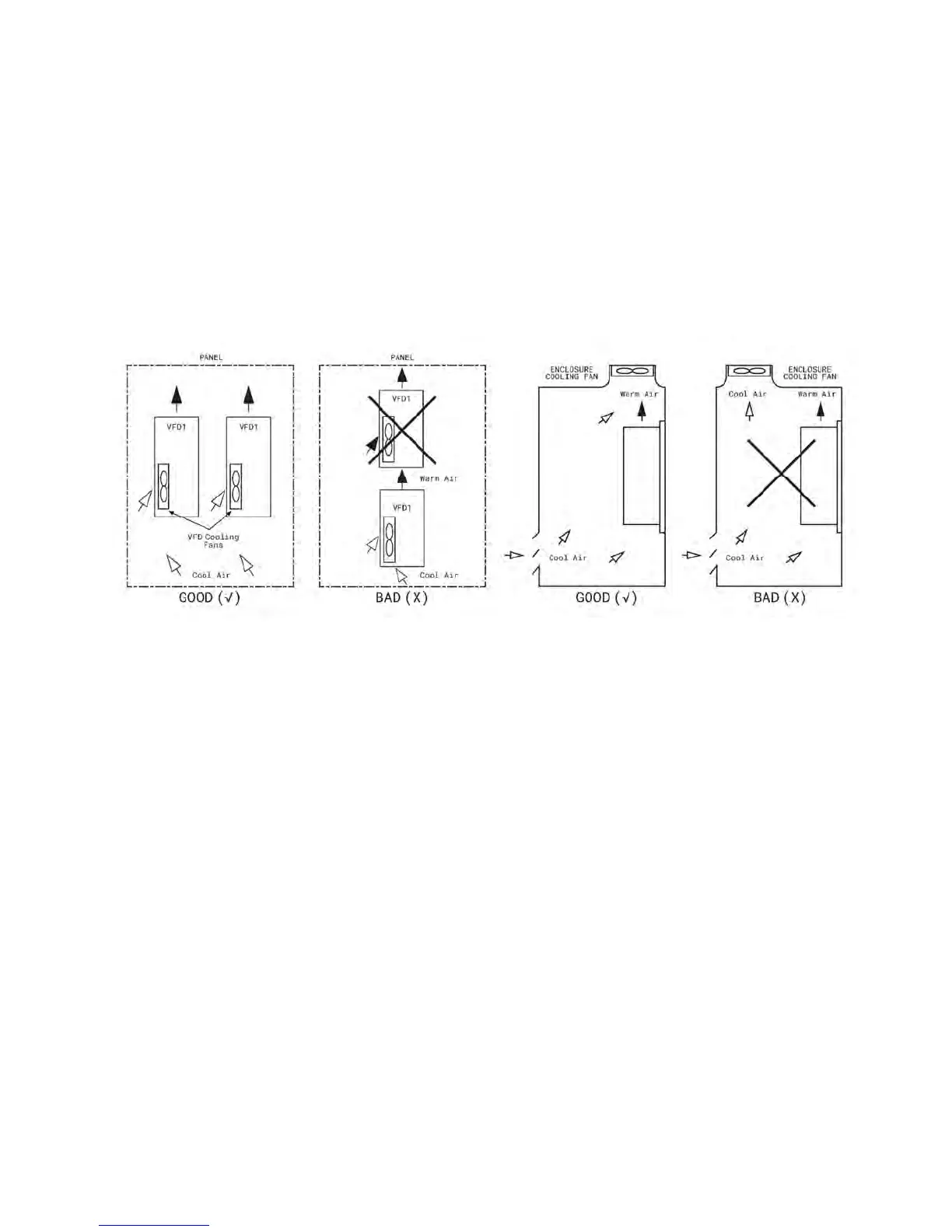 should provide adequate airflow for all the VFDs. Do not install VFD above another