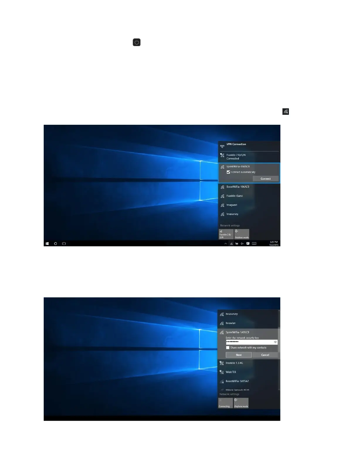 For other Window versions, consult your PC's operation manual for details on activating Wi-Fi.