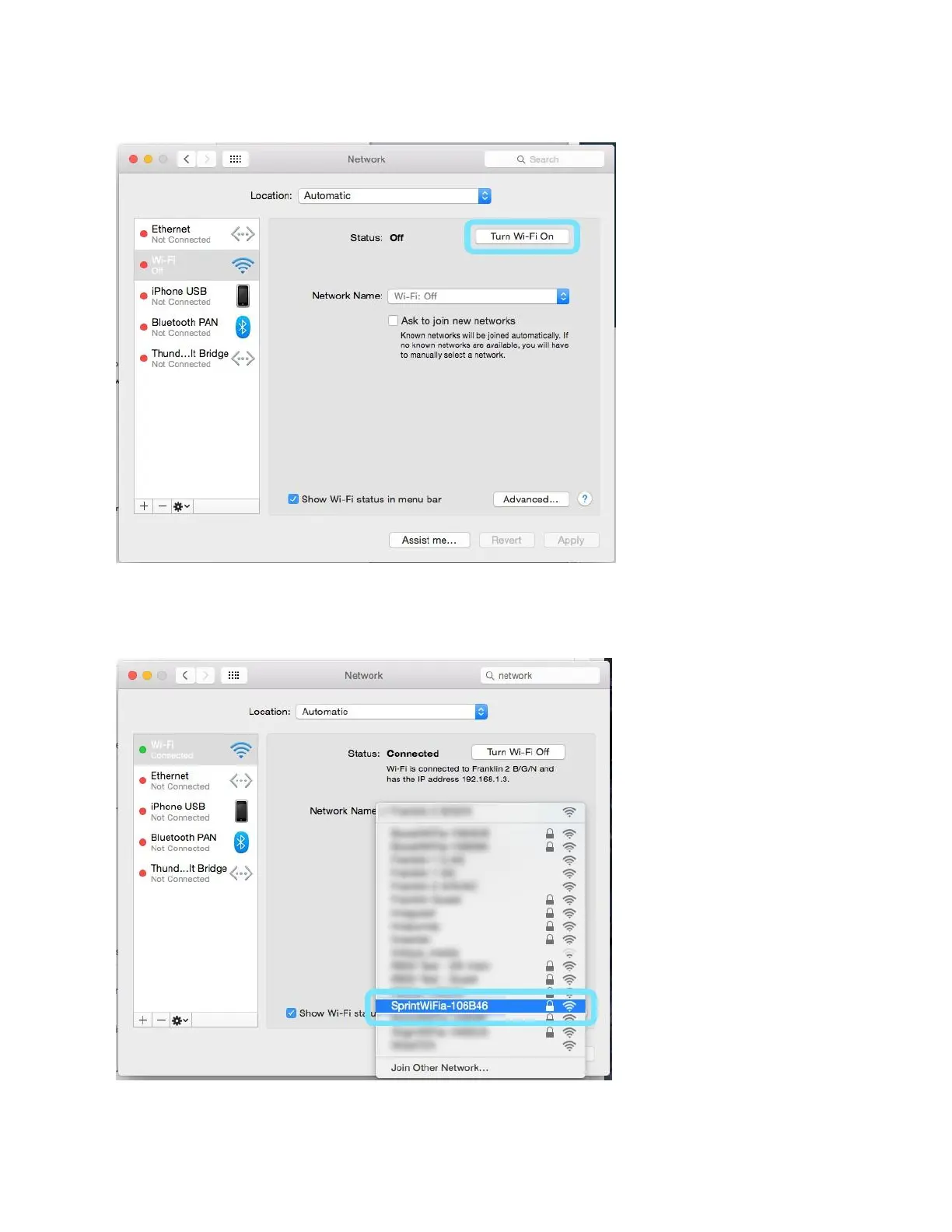3. Click Wi-Fi > Turn Wi-Fi On.