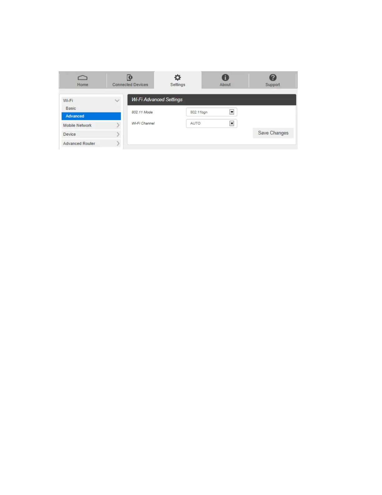 1. From the Web UI, click Settings > Wi-Fi > Advanced.
