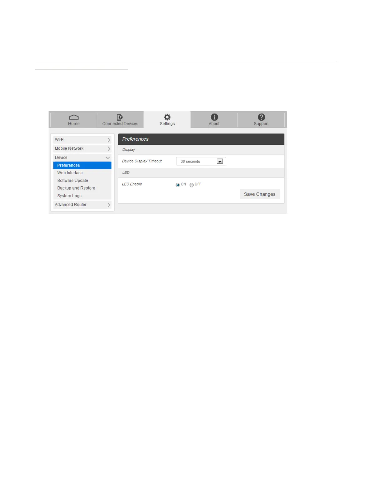 1. From the Web UI, click Settings > Device > Preferences. You can set the display timeout on this page.