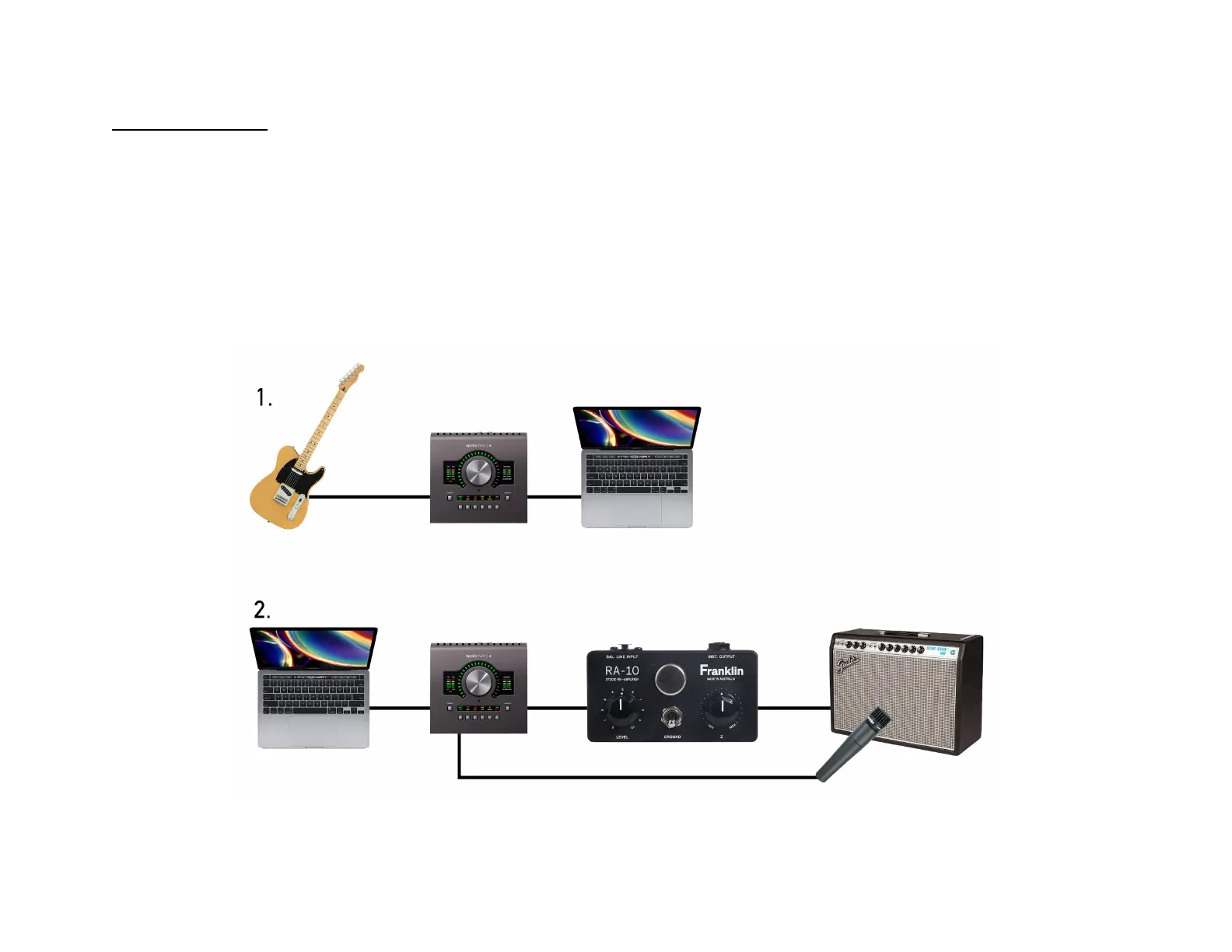 allows for recording in spaces where loud amplifiers are not appropriate or available. The direct signals can be then re-amplified in a