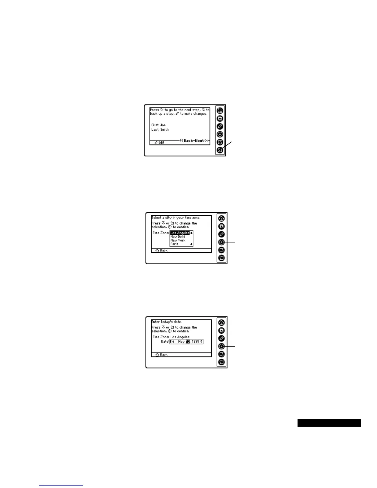 previous screen by pressing the Home key. Press the Select key to