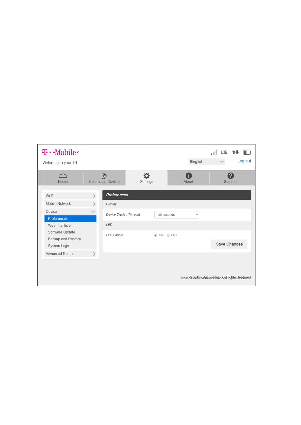 Configure your Hotspot's Wi-Fi, Mobile Network, Device, and Advanced Router settings.