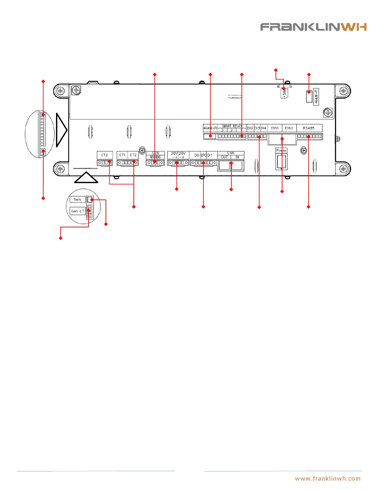 External CT input terminal: Input terminal for external CT to measure current information.