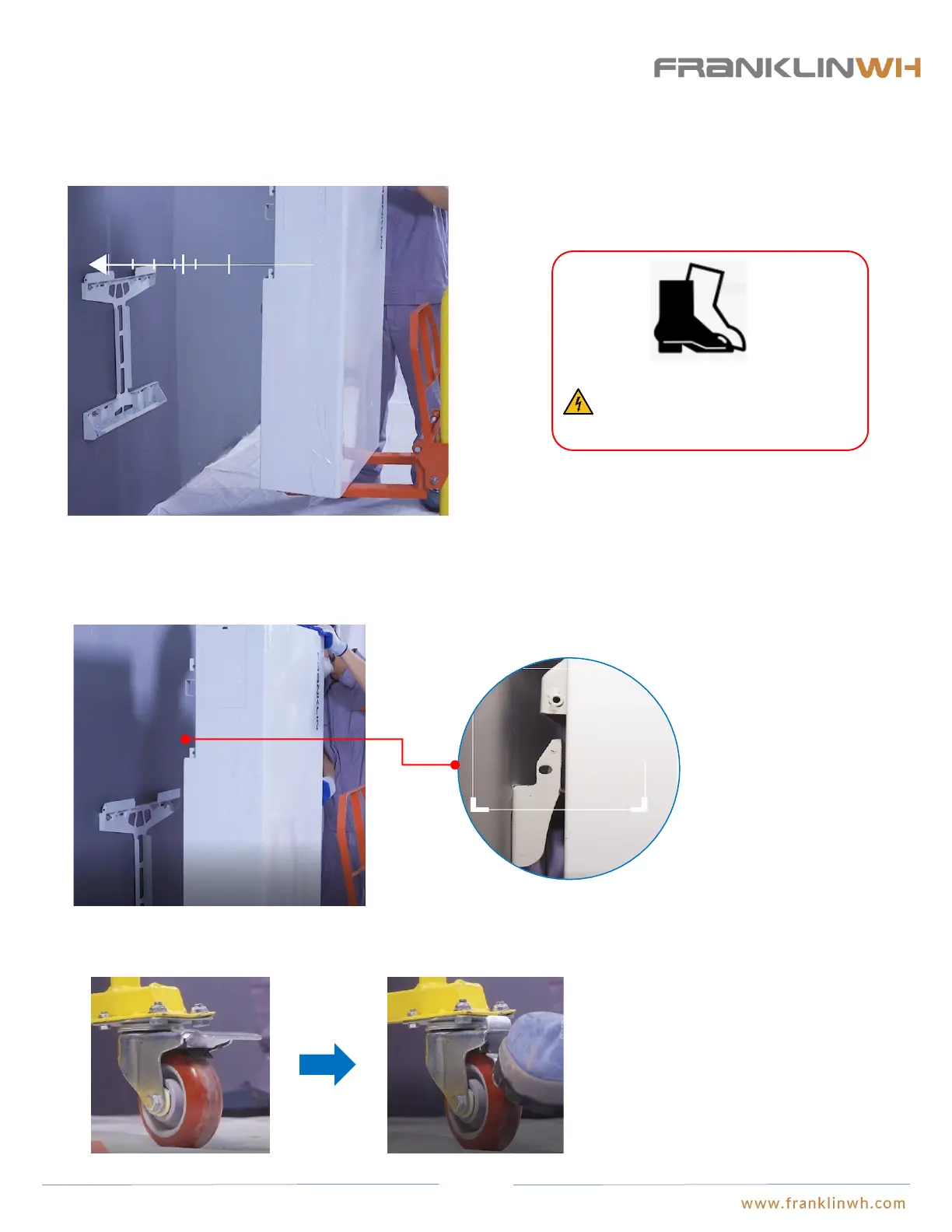 ● For both floor mounting or wall mounting, a fork hand truck will be needed to lift aPower so that the installation clips on the unit