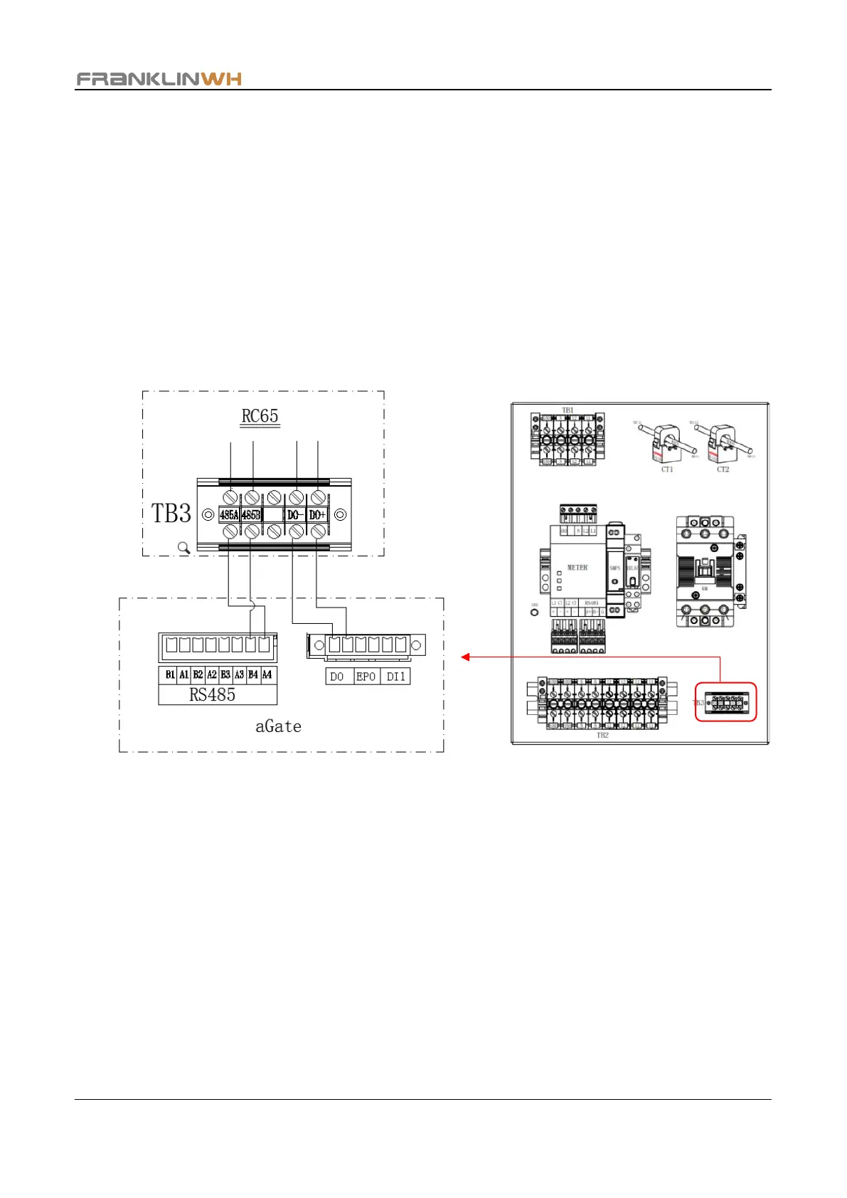 on the aPbox TB3 module are connected to the RS485 A4 and B4 terminals on the aGate