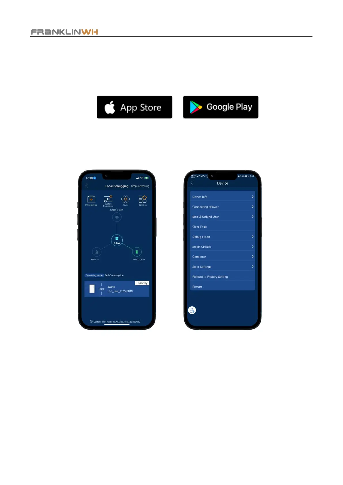 You can install the latest version of FranklinWH App from the Apple App Store and Google