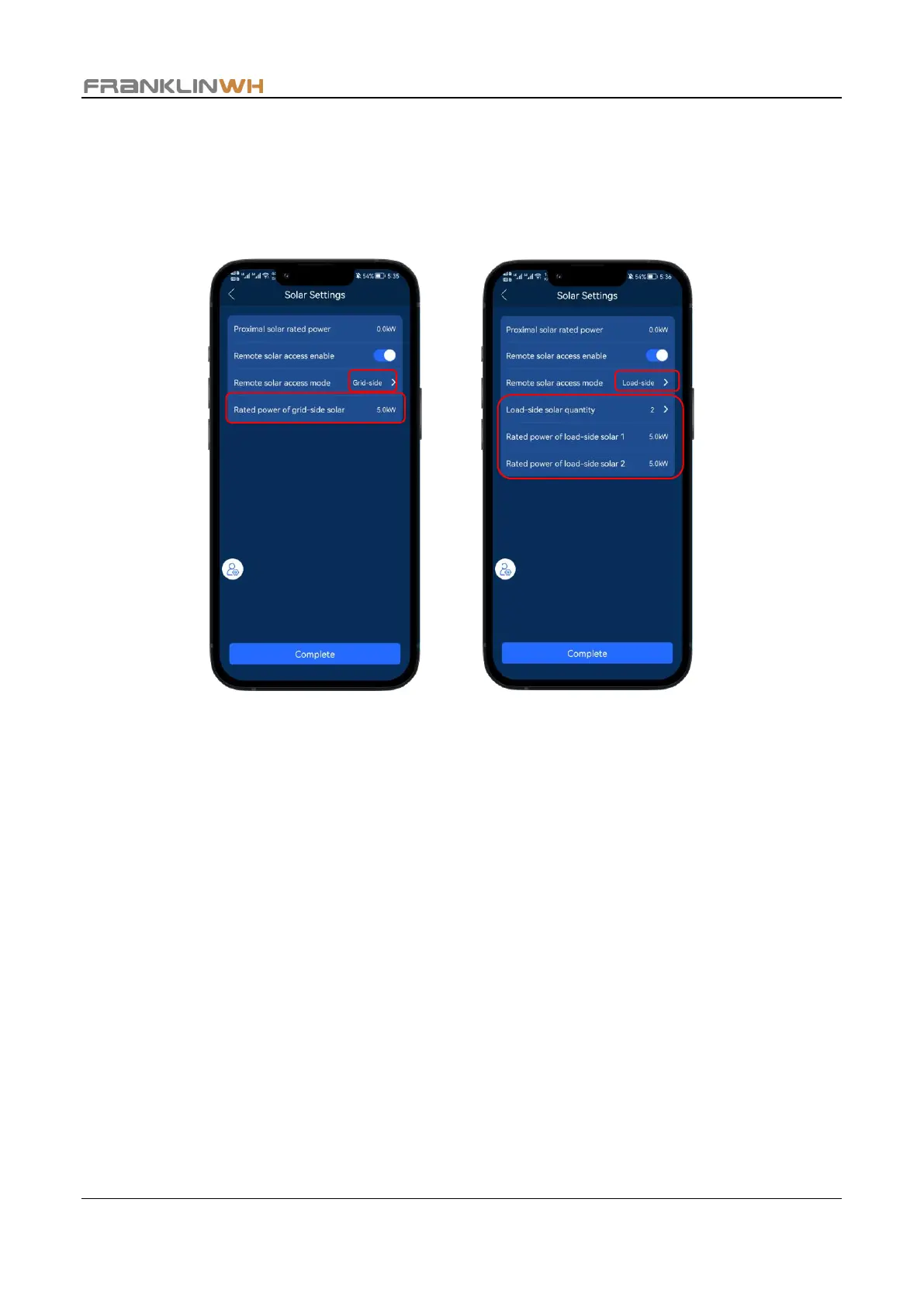 Step 3 For both grid-side and load-side, input the solar power value. For load-side, also select