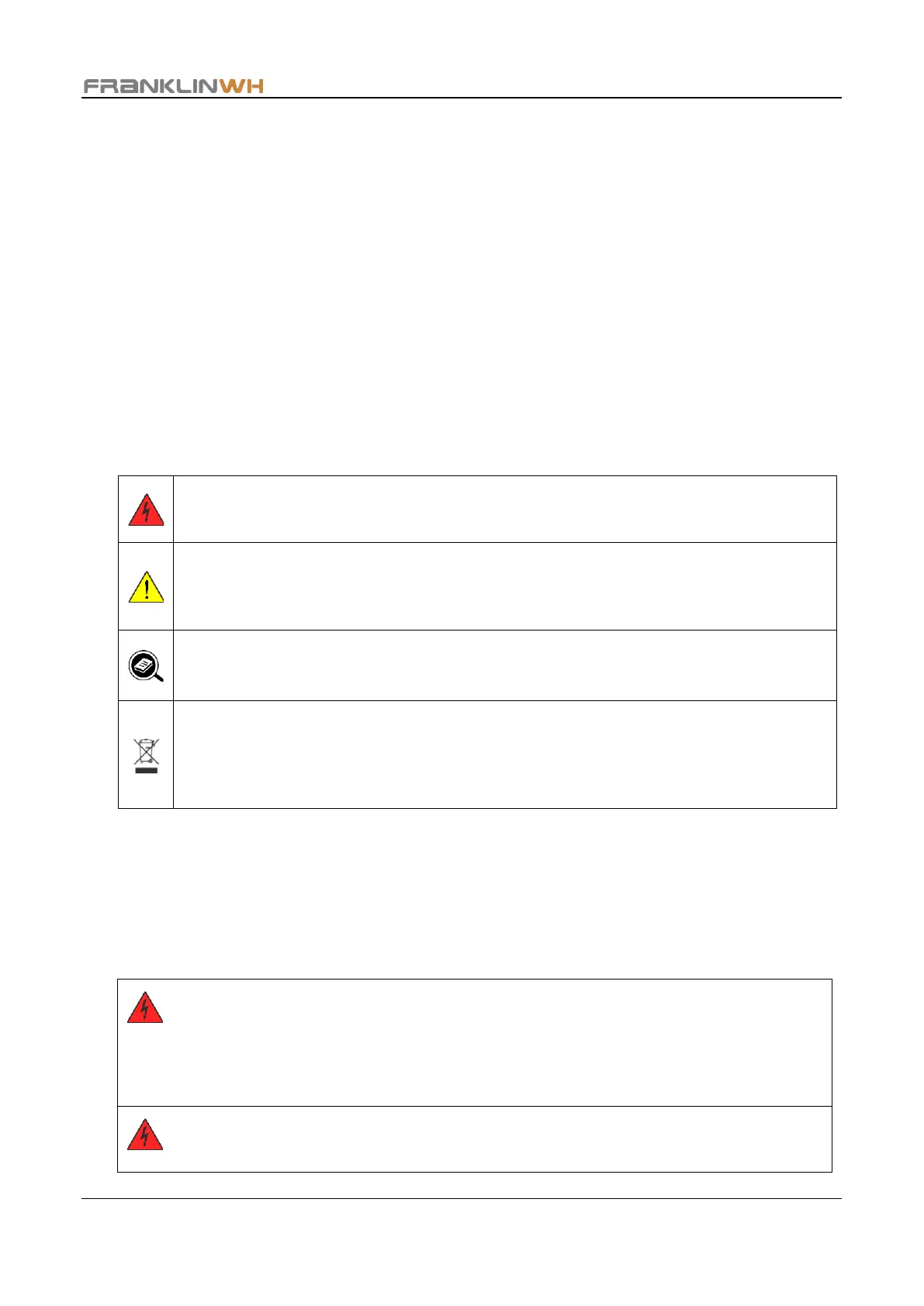 Only FranklinWH certified and qualified electricians should install, maintain or replace
