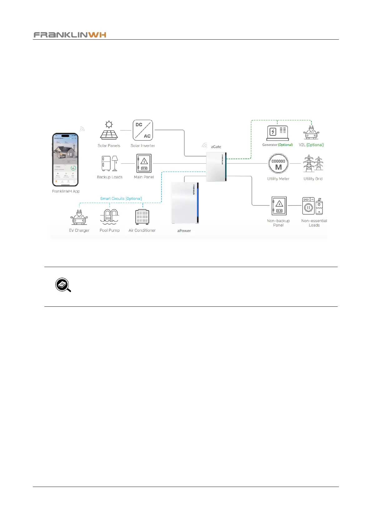non-backup ports of the aGate. If the grid fails, the FranklinWH system will only power