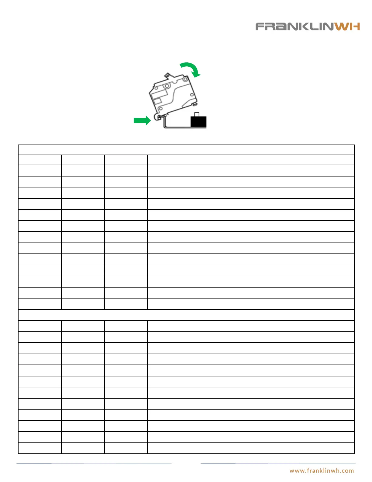 Table Optional circuit breakers for Smart Circuit 2 (1Pole)
