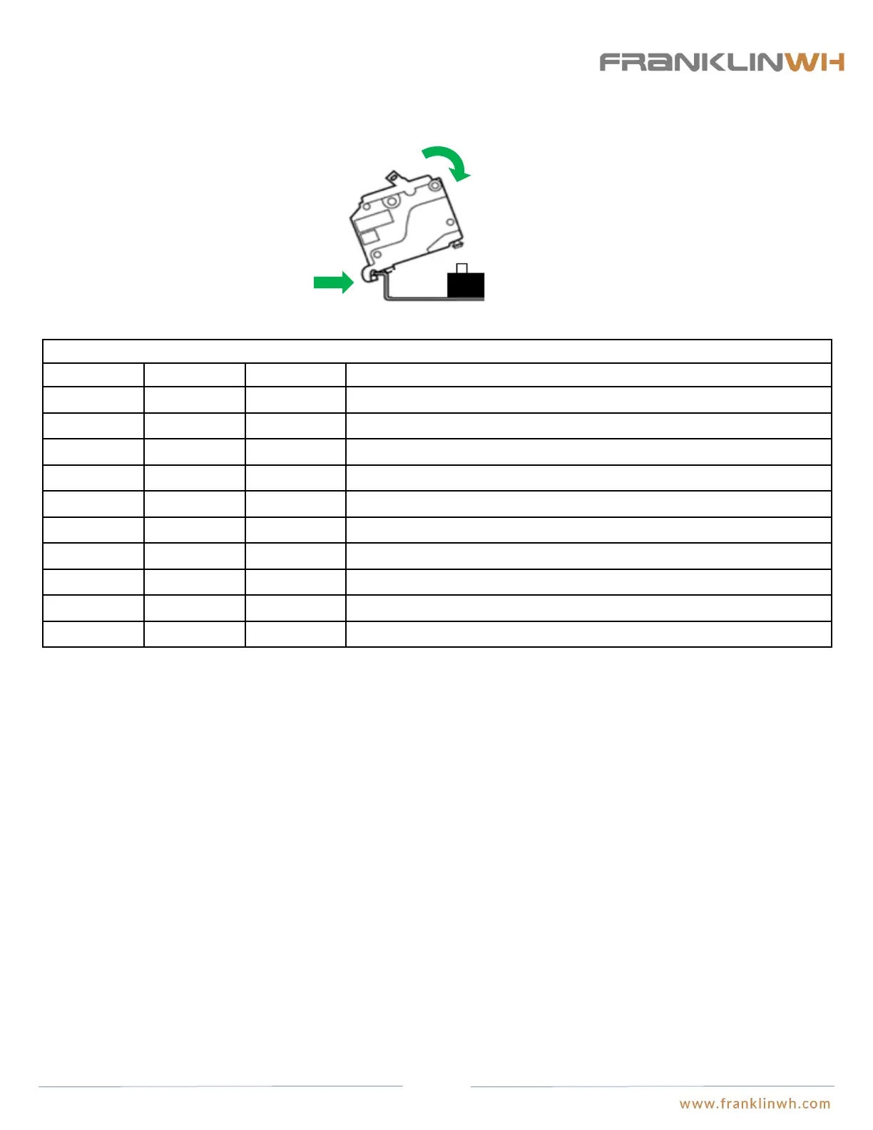 Table Optional circuit breakers for Smart Circuit 1+Circuit2 (2Pole)