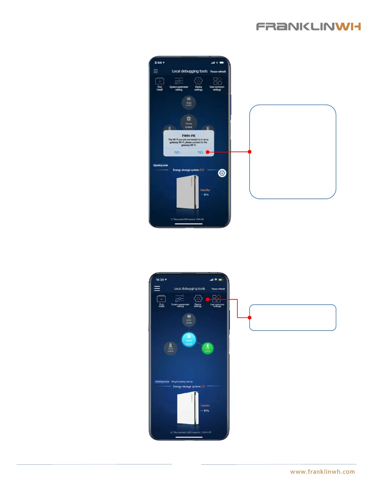 After Wi-fi connection has been established, you can access the settings page.