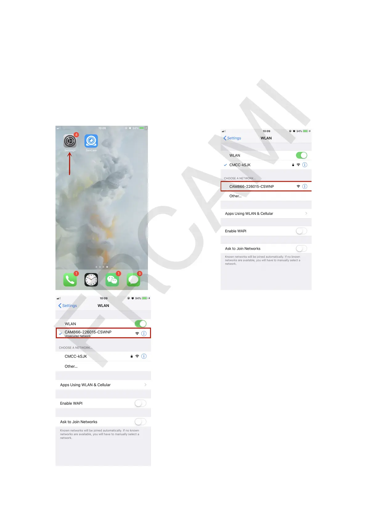 Tap the WLAN settings on your phone, search for this camera’s Wifi