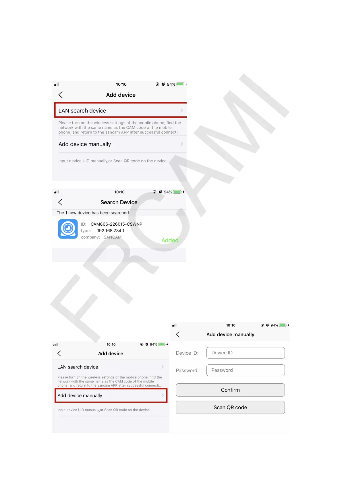 4.2 Click LAN search device to find the camera then tap