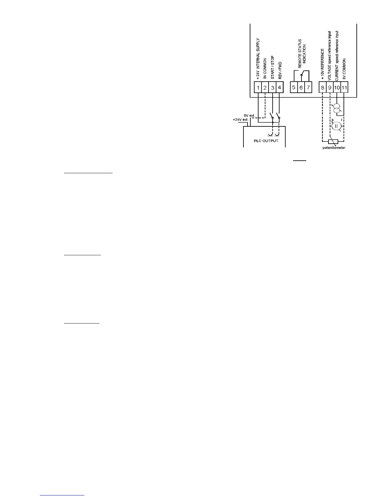 - run/stop : control switch or PLC output