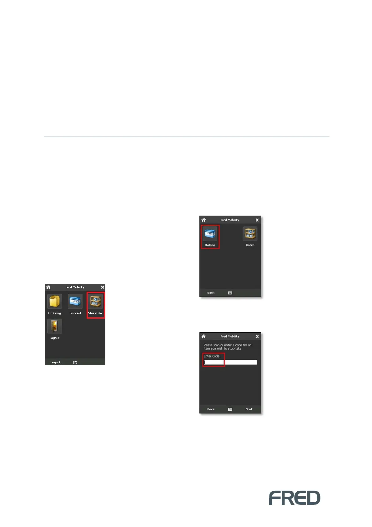 The Stocktaking option on your Fred Mobility device allows you to perform either a: