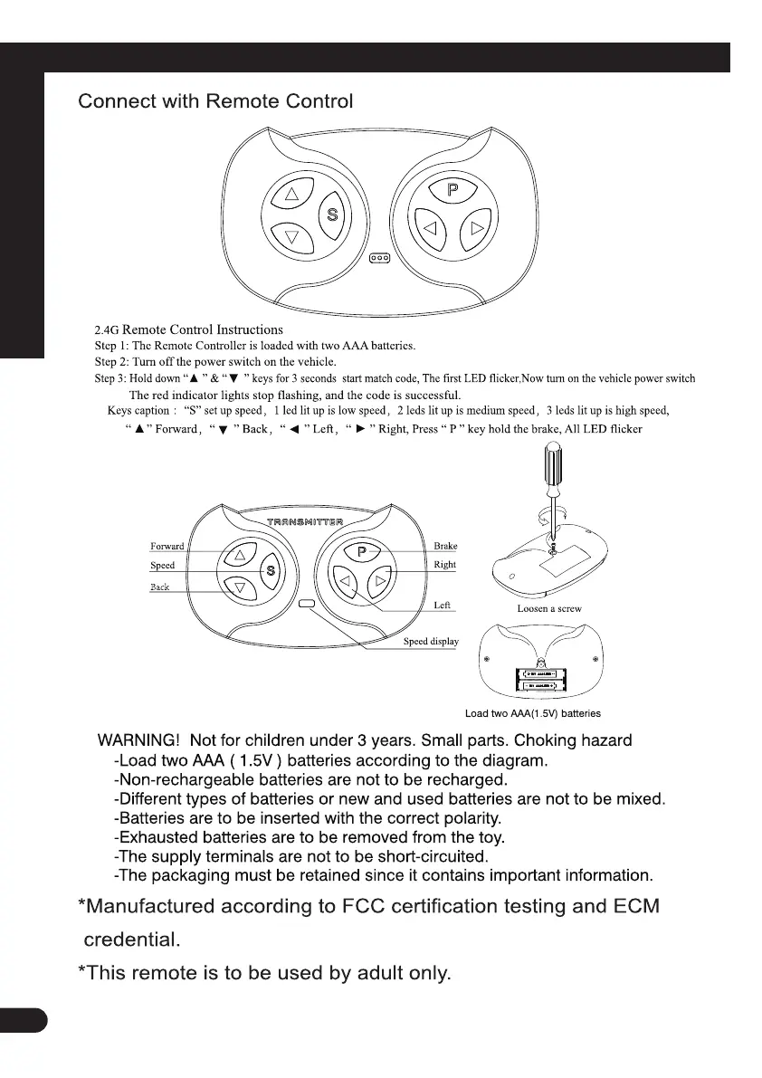 FREDDO DK-CA003 - Remote Control Operation; 2.4 G Remote Control Instructions; Remote Control Safety and Battery Care