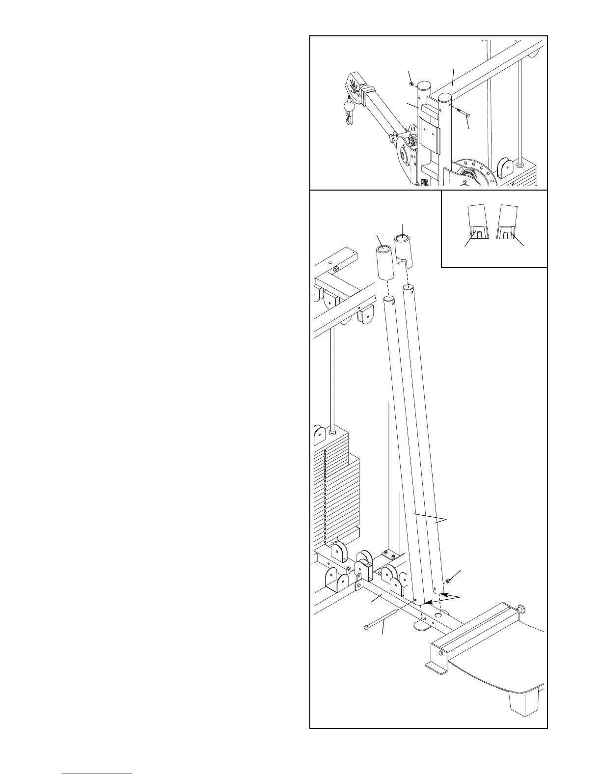 11. Remove the Hack Squat Uprights (115) from the