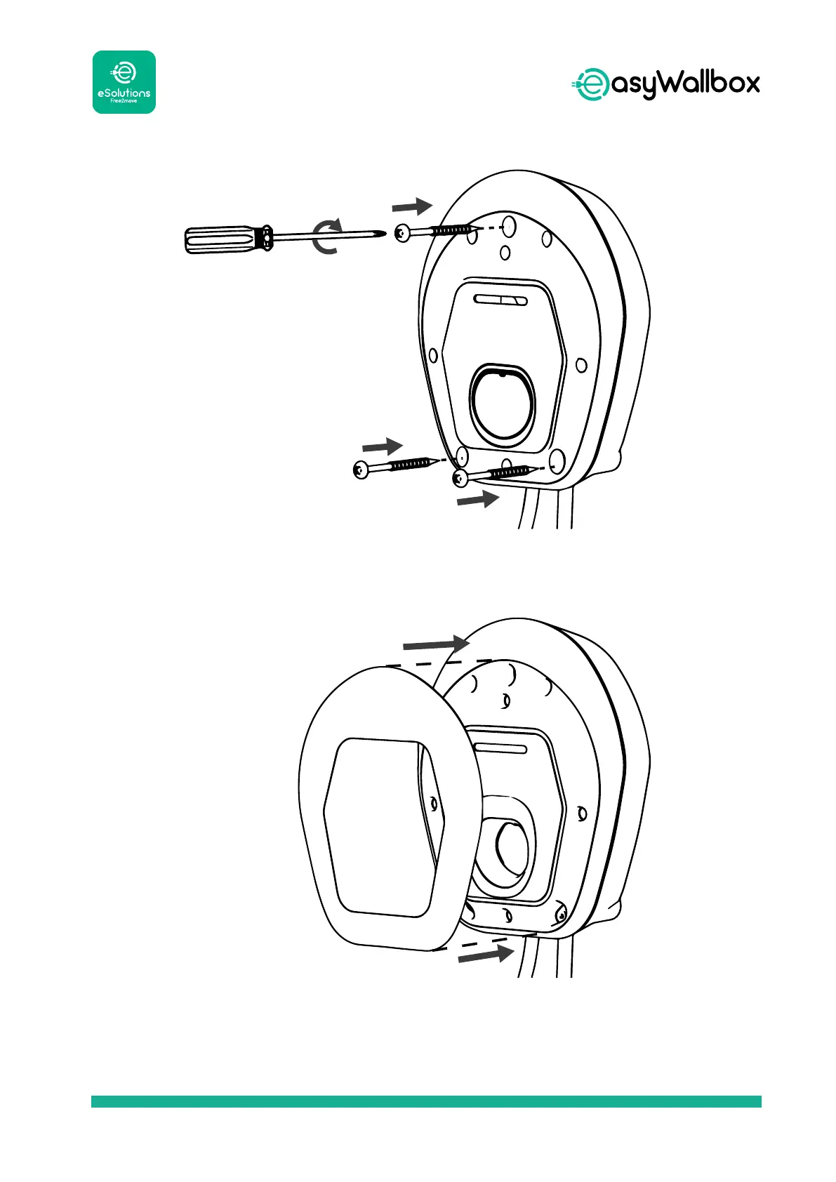 5. Postavite uređaj easyWallbox na rupe i pričvrstite ga na zid pomoću