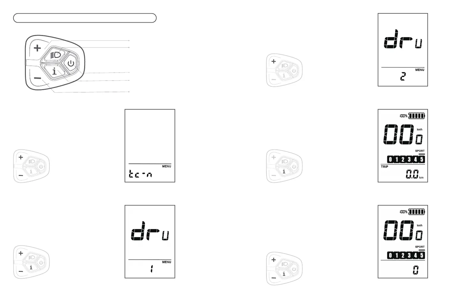 the handlebar '+' and '-' buttons.