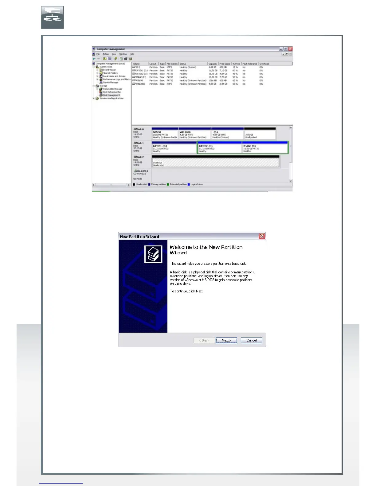 "New Partition". The "New Partition Wizard" opens. Click on "Next".