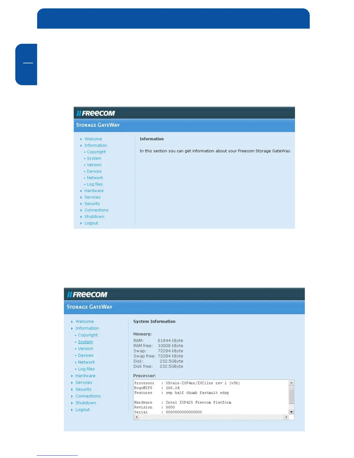 Freecom FSG-3 - Chapter 6: Configuration Options Explained; 6.1 Information Menu Options