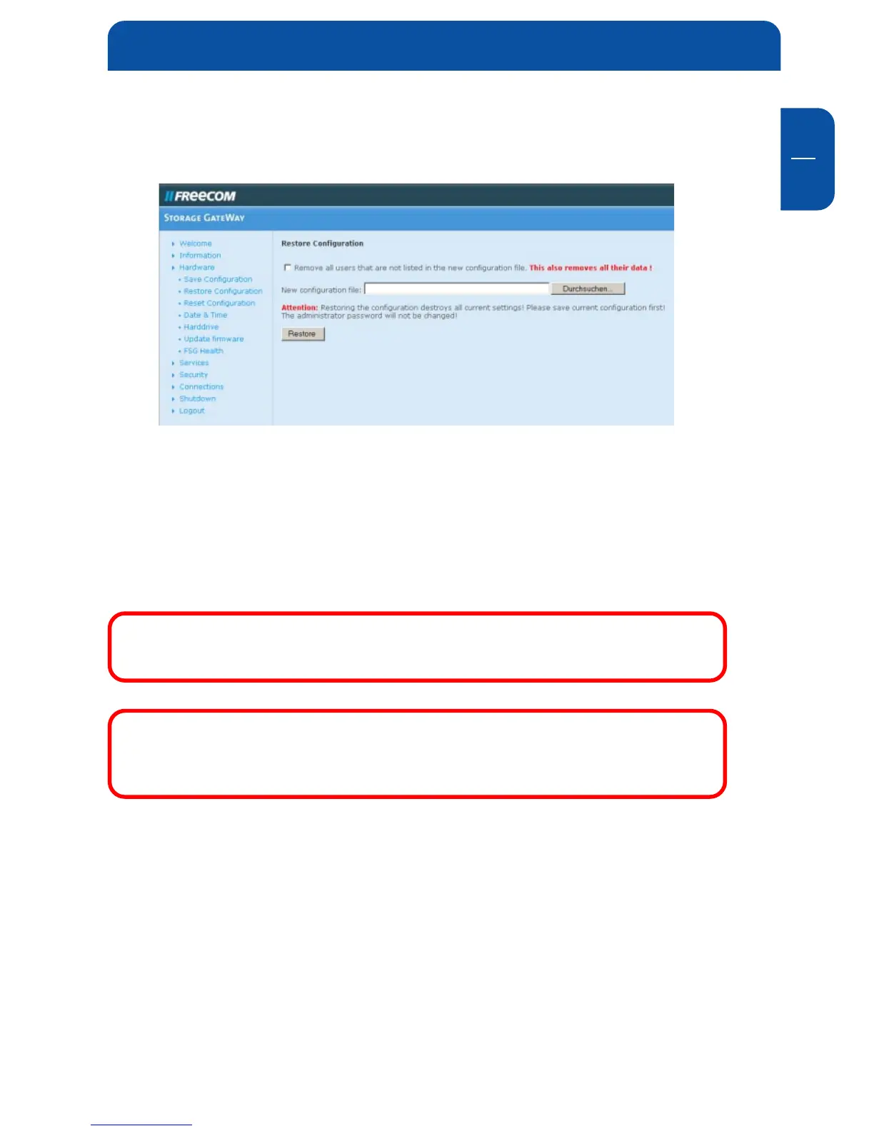Then press the Restore button to start the restore. Do not switch off the FSG-3