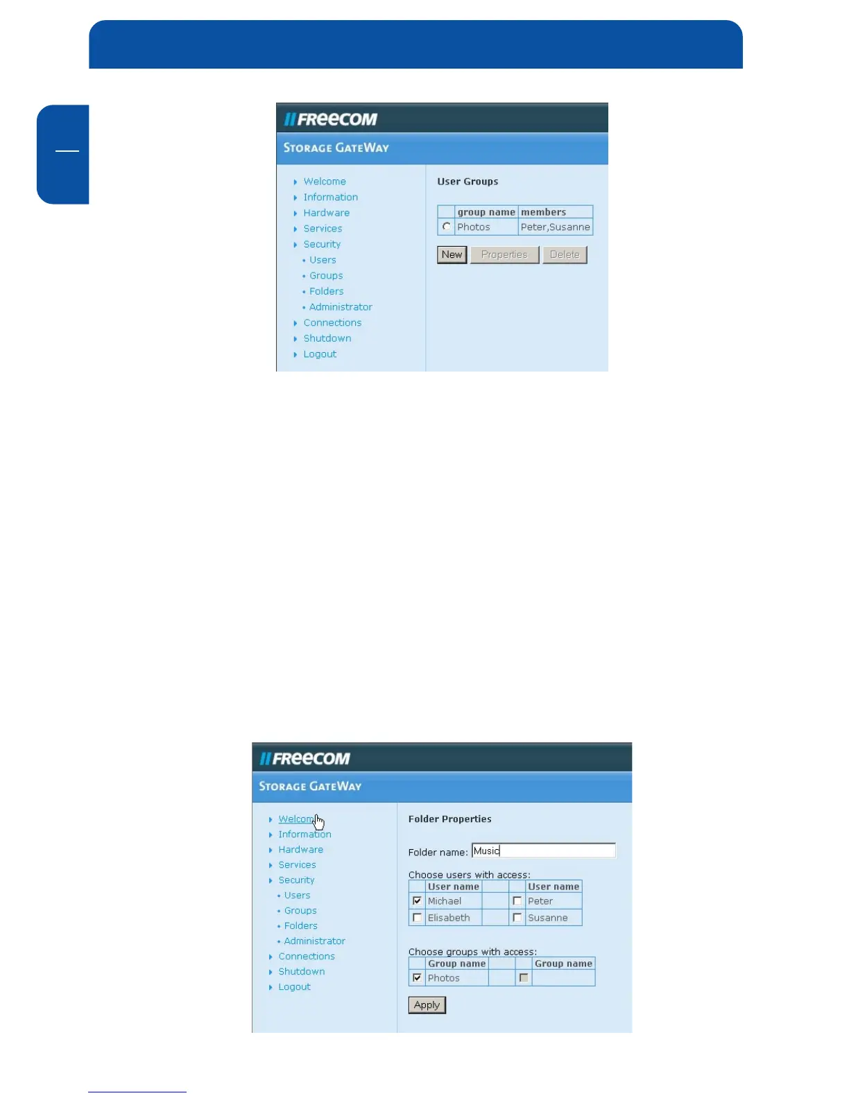 these menus. Folder permissions can be given either to a group or a user or both.