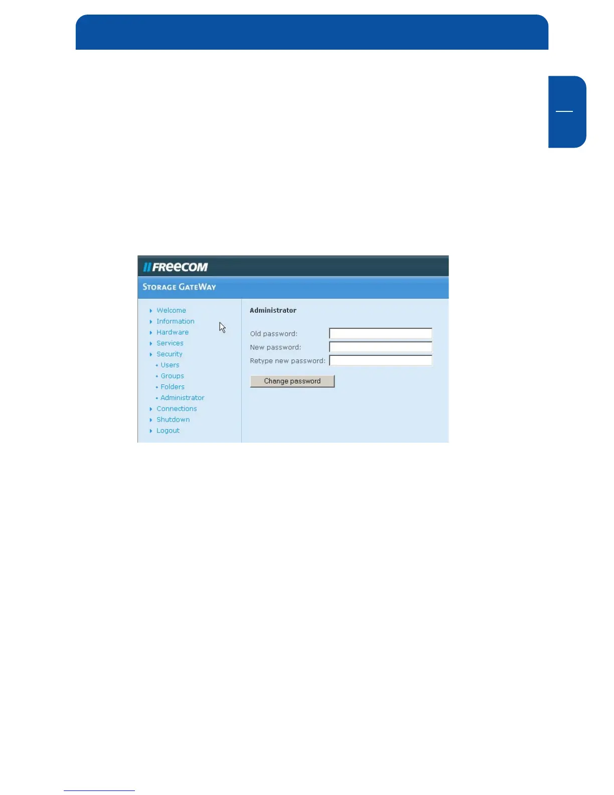 Here you can alter the administrator password. Please enter the old password,