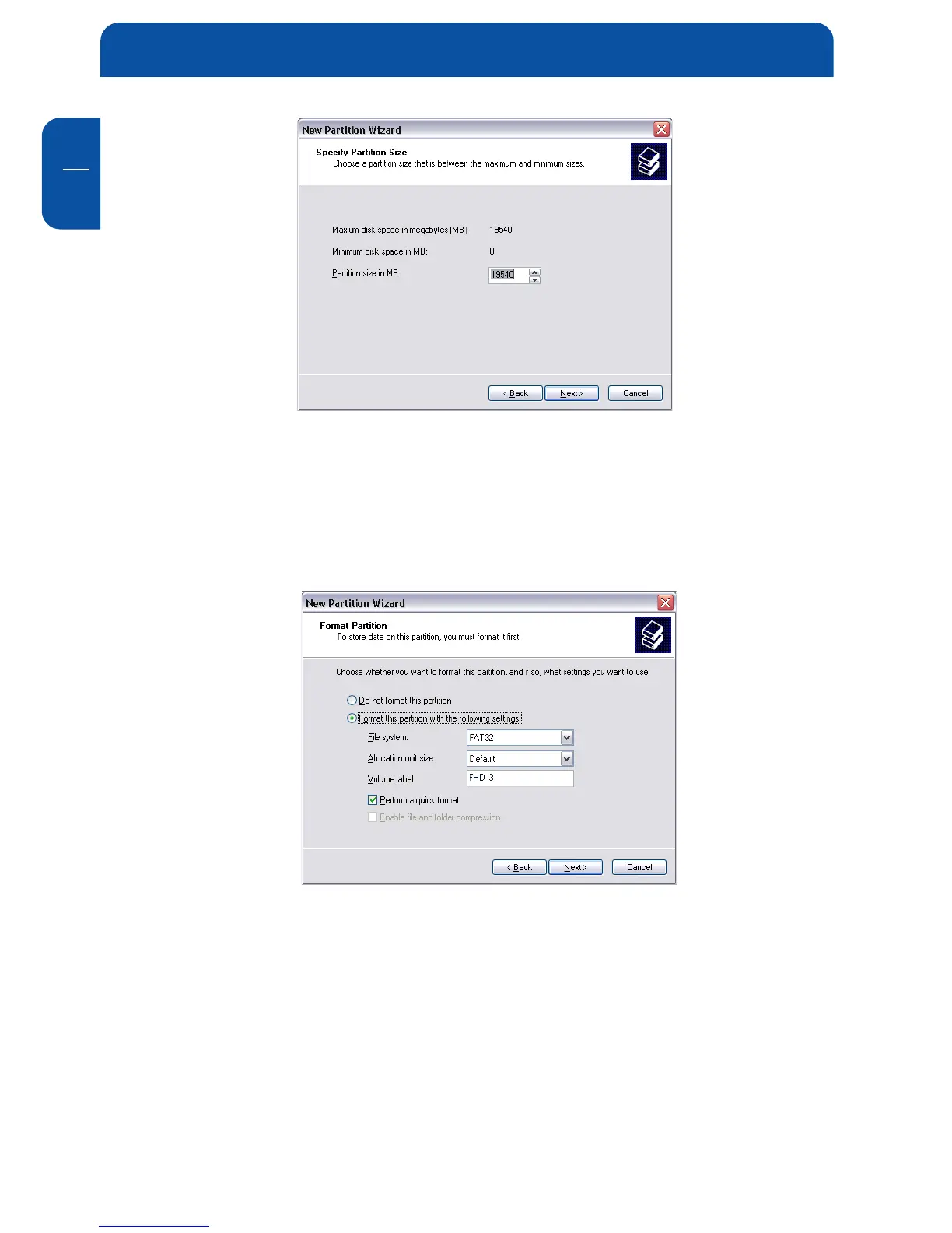 10. Click on "Finish" to complete the partitioning of your MediaPlayer-3. Your