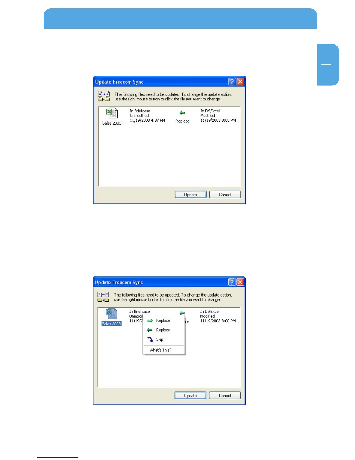 3. A status window appears. Please select "Update" if you wish to synchronize the file