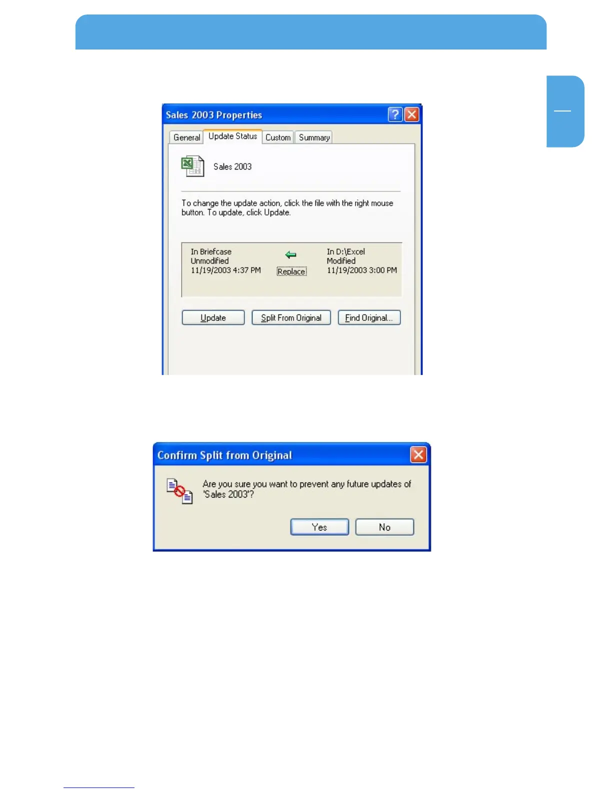 3. Select "Update" and "Split From Original".