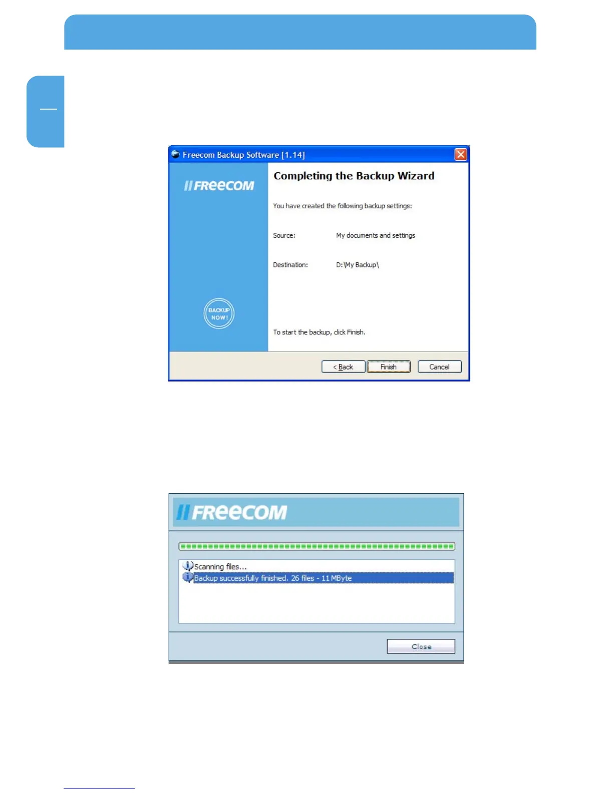 After the end of the backup click on "Close" and you are returned to the main window.