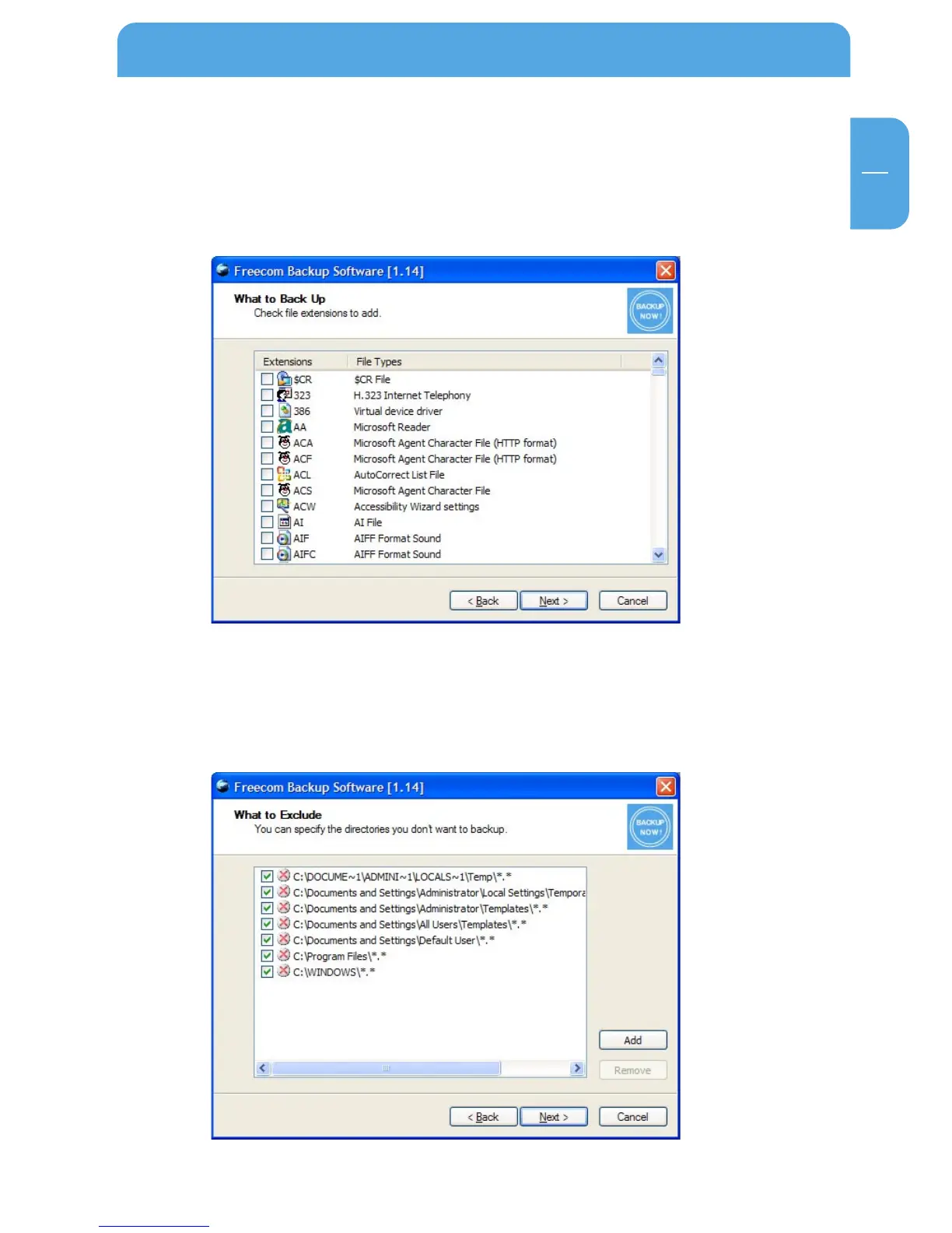 various folders of the system drive are selected. Click the "Add" button to add a fur-