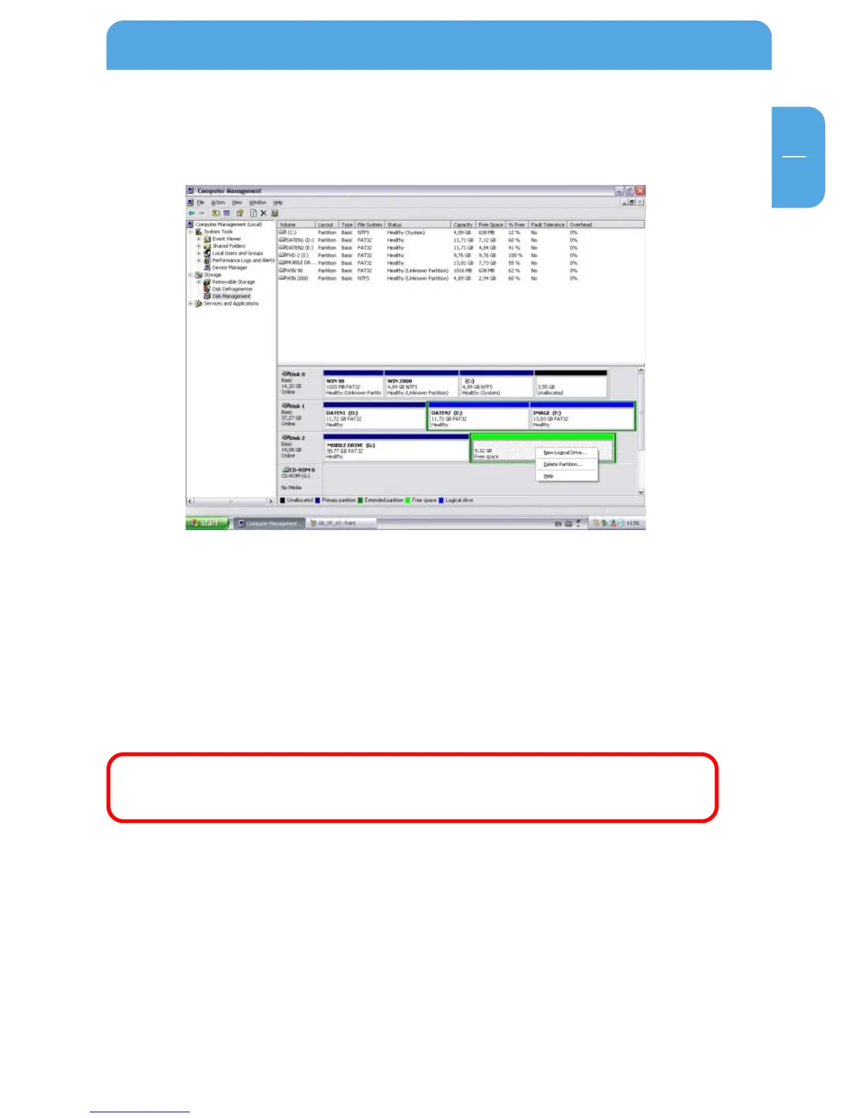 9. Right-click on "Free Space" and select "New Logical Drive" (Windows 2000: "Create