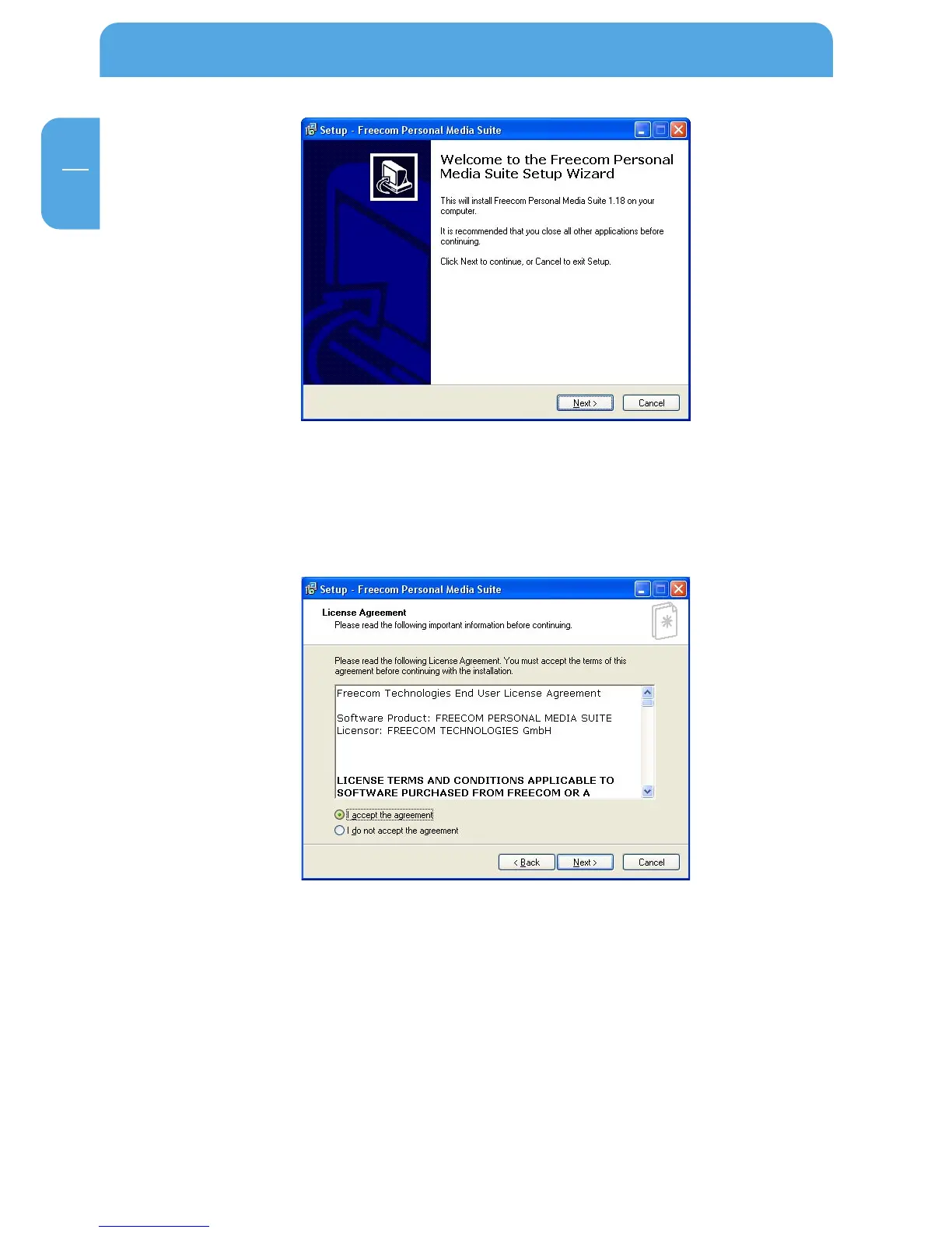 4. Default target folder is C:\Programs\Freecom Personal Media Suite. You can select a
