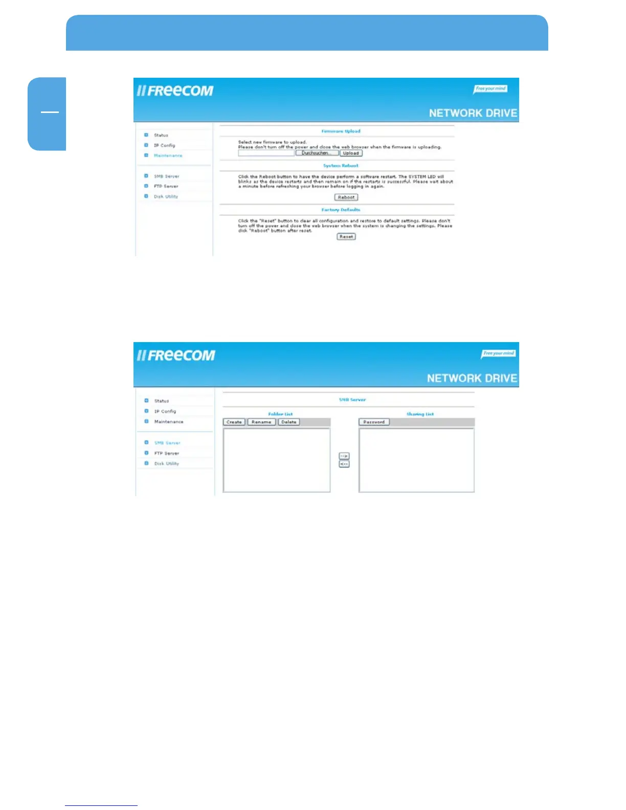 In the left section (“Folder List”), shared folders can be administrated. In this list, all avail-