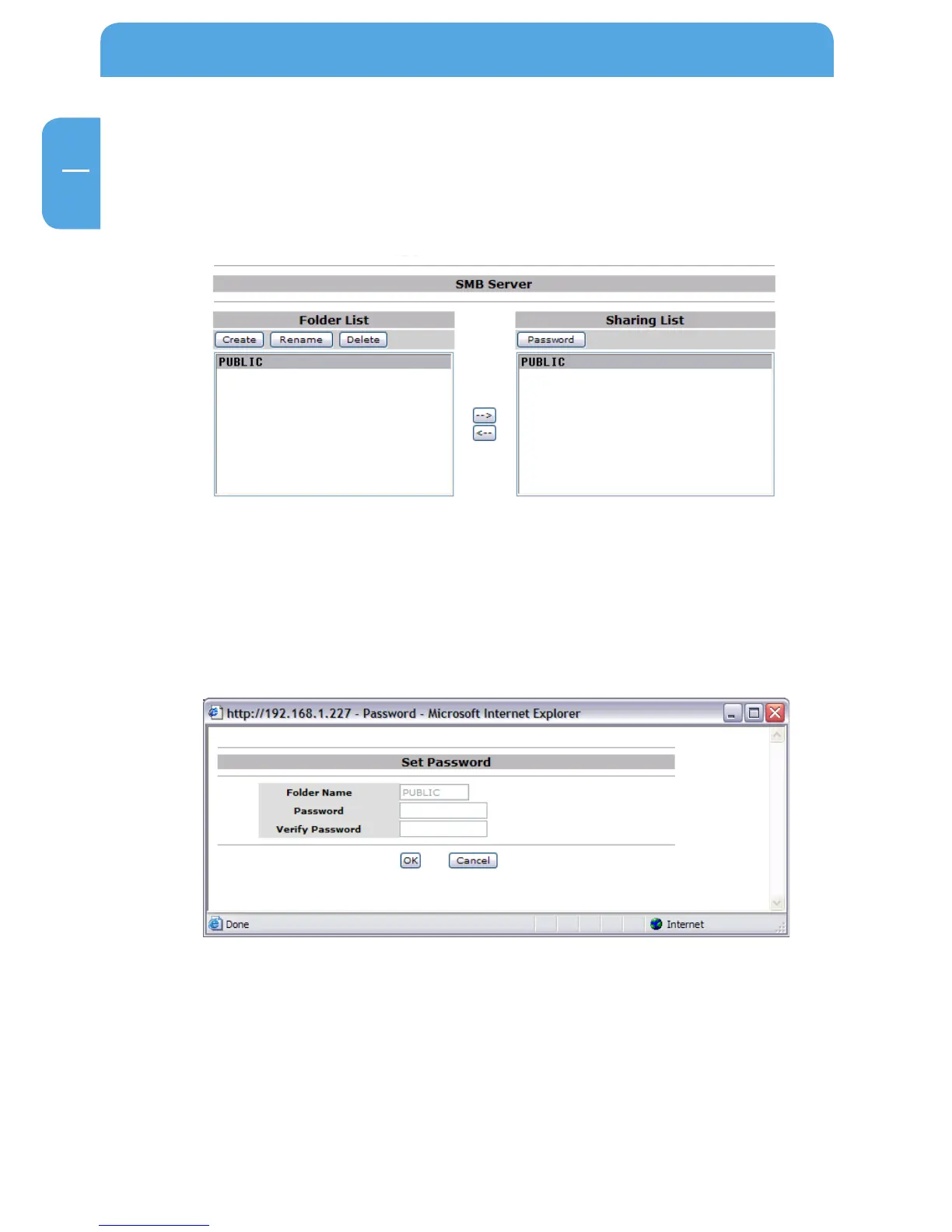 To protect a shared folder with a password, select the folder in the “Sharing List” and