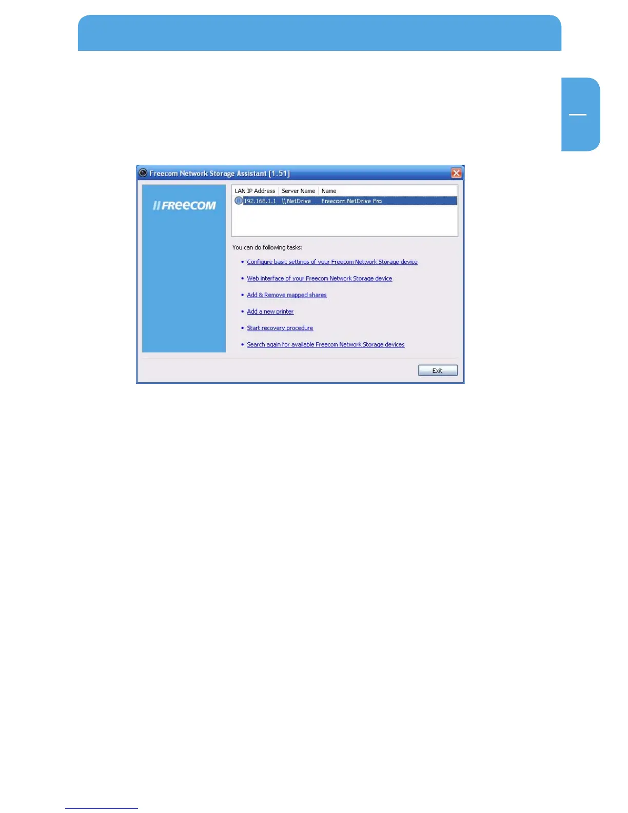 The Freecom Network Storage Assistant quickly detects and performs the basic set-up