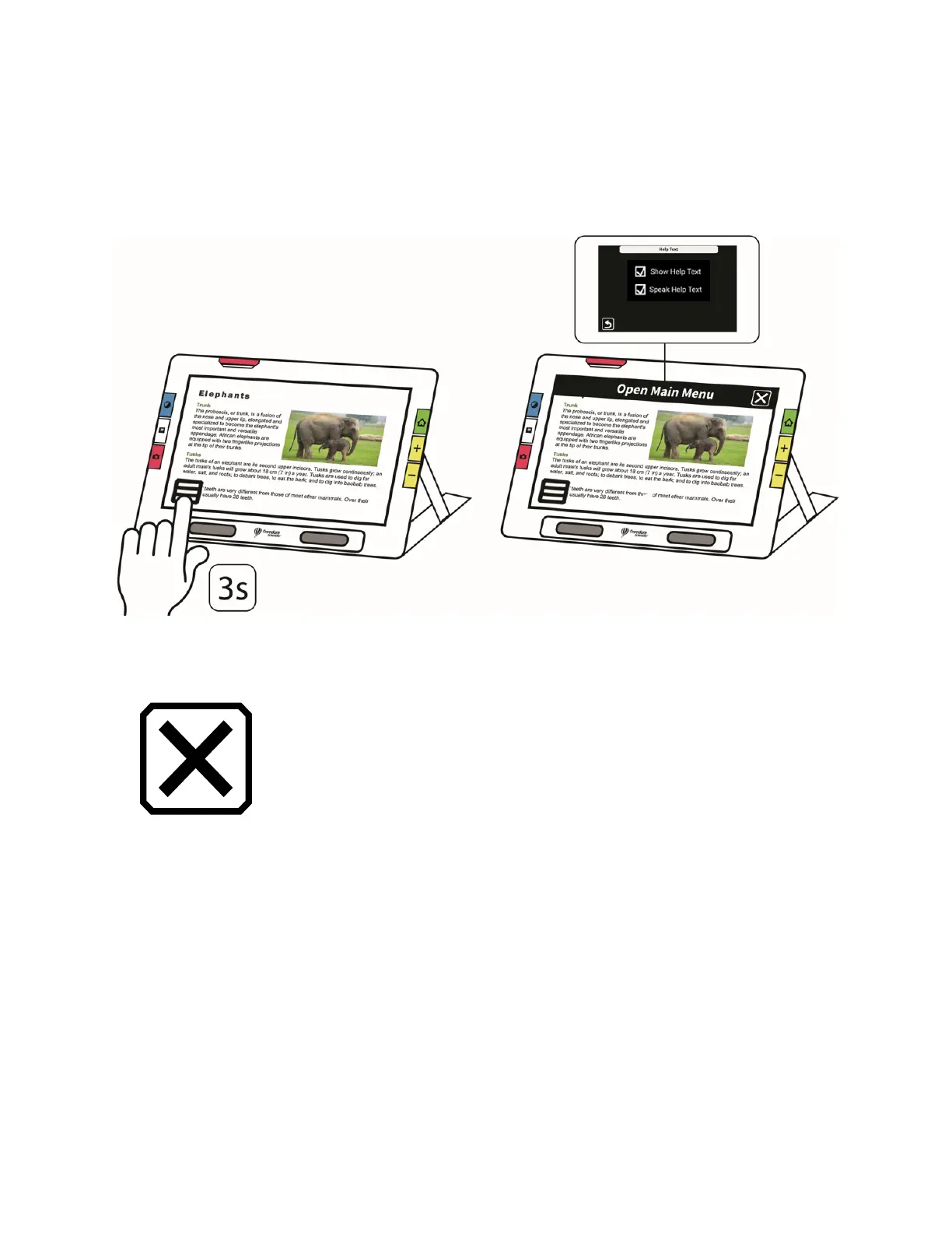 screen. Pressing the Main Menu button for three seconds, as shown in the