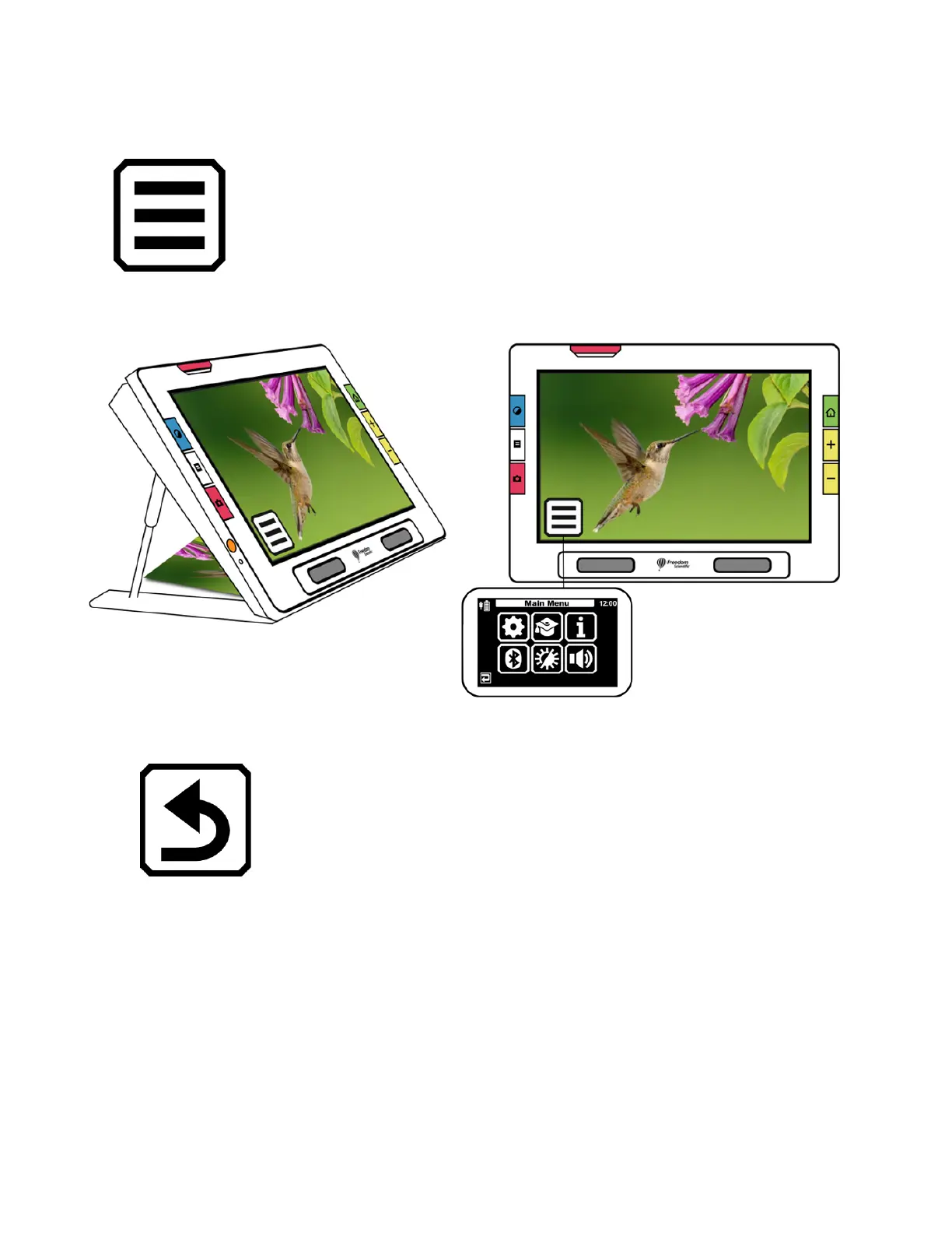Menus are displayed by tapping the Main Menu button.