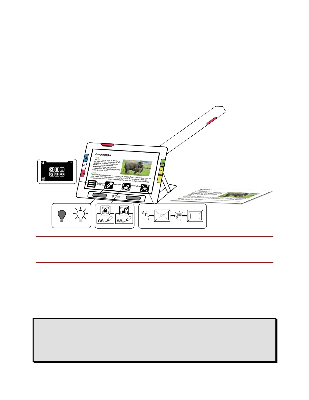 Place your page to the right of the device until it fills the screen. Press the