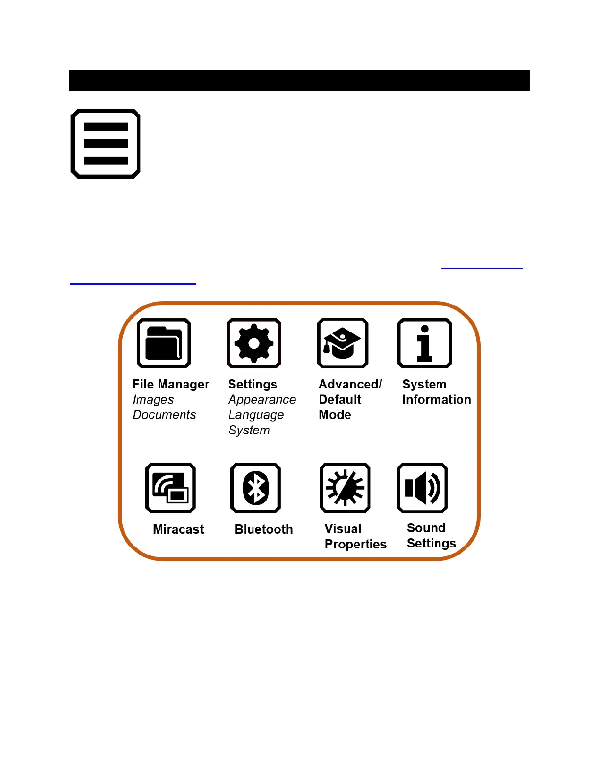 modify the behavior of RUBY 10. The Main Menu has icons that you tap to