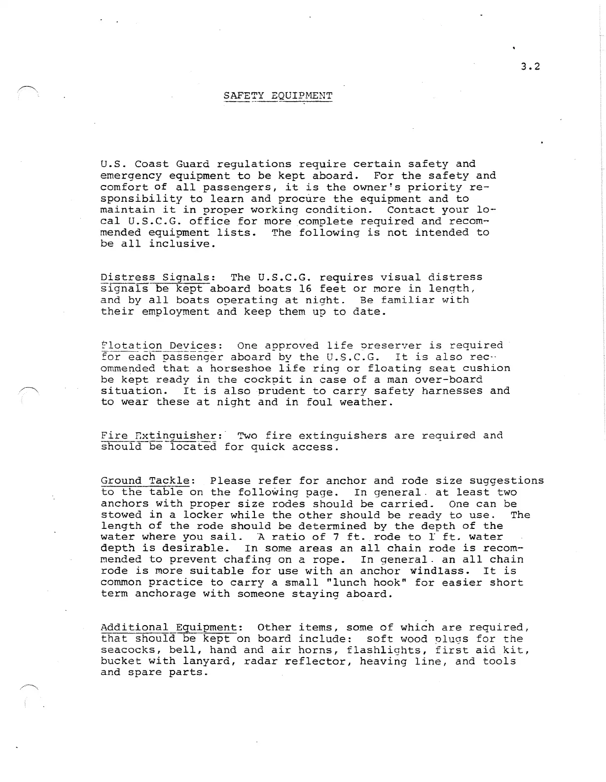 Ground Tackle: Please refer for anchor and rode size suggestions