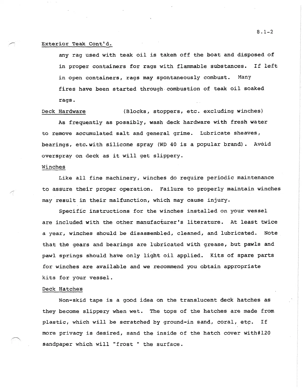 a year, winches should be disassembled, cleaned, and lubricated. Note